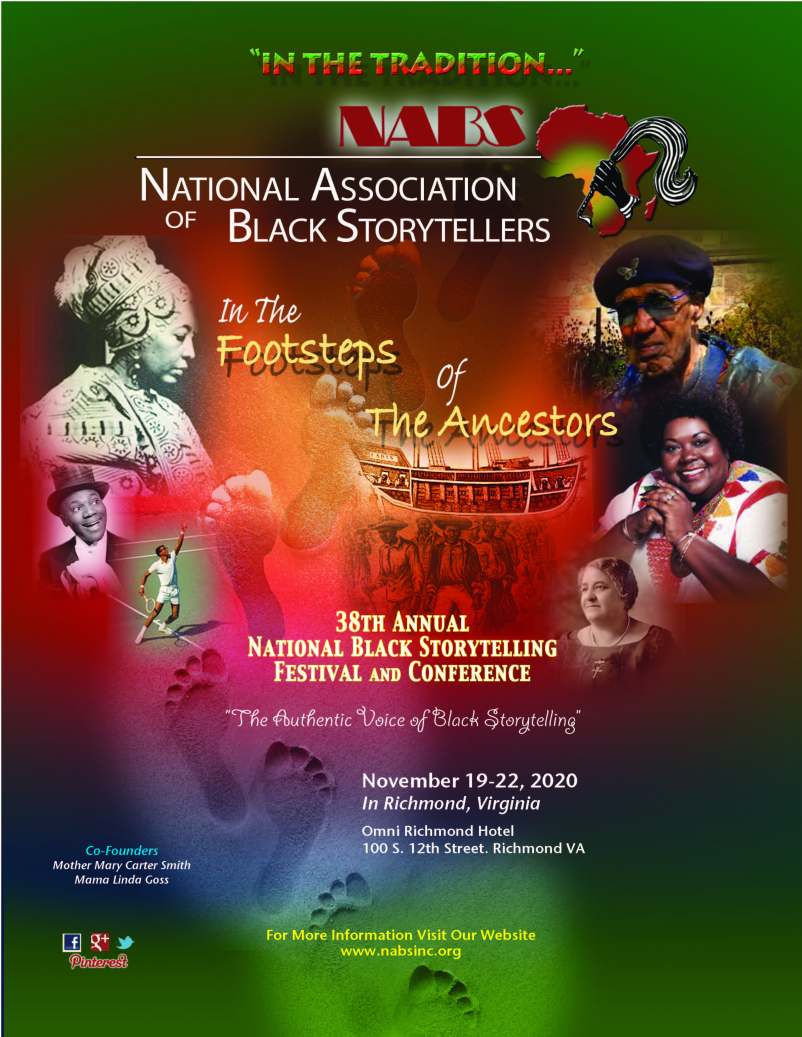 So now I’m going to church, singing Happy Birthday, meeting, studying, meditating, telling and listening to stories, etc. VIRTUALLY. I’m doing all the things I thought would just not be the same if I could not do them face to face. And truthfully, they are not absolutely the same. The camaraderie is not quite the same. The energy of getting dressed to look our best before we go out to be with friends, family and coworkers is not the same. But at the end of the day, better virtual than not at all. So here we go, The National Association of Black Storytellers 38th Annual “In the Tradition…”Storytelling Festival Conference for 2020, IN THE FOOTSTEPS OF THE ANCESTORS, via ZOOM!!!