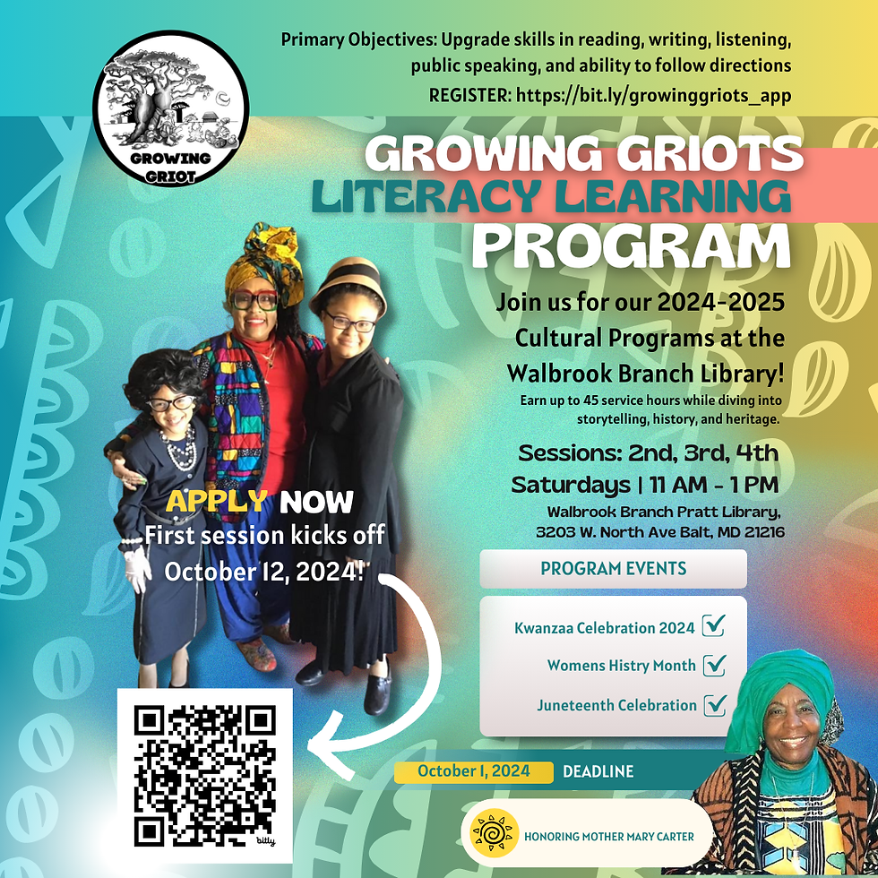 ​The “Growing Griots” are the youth component of the Griot Circle of Maryland.